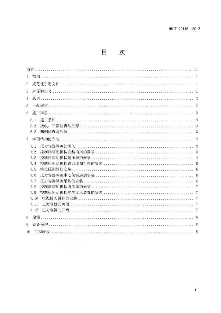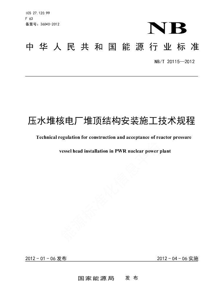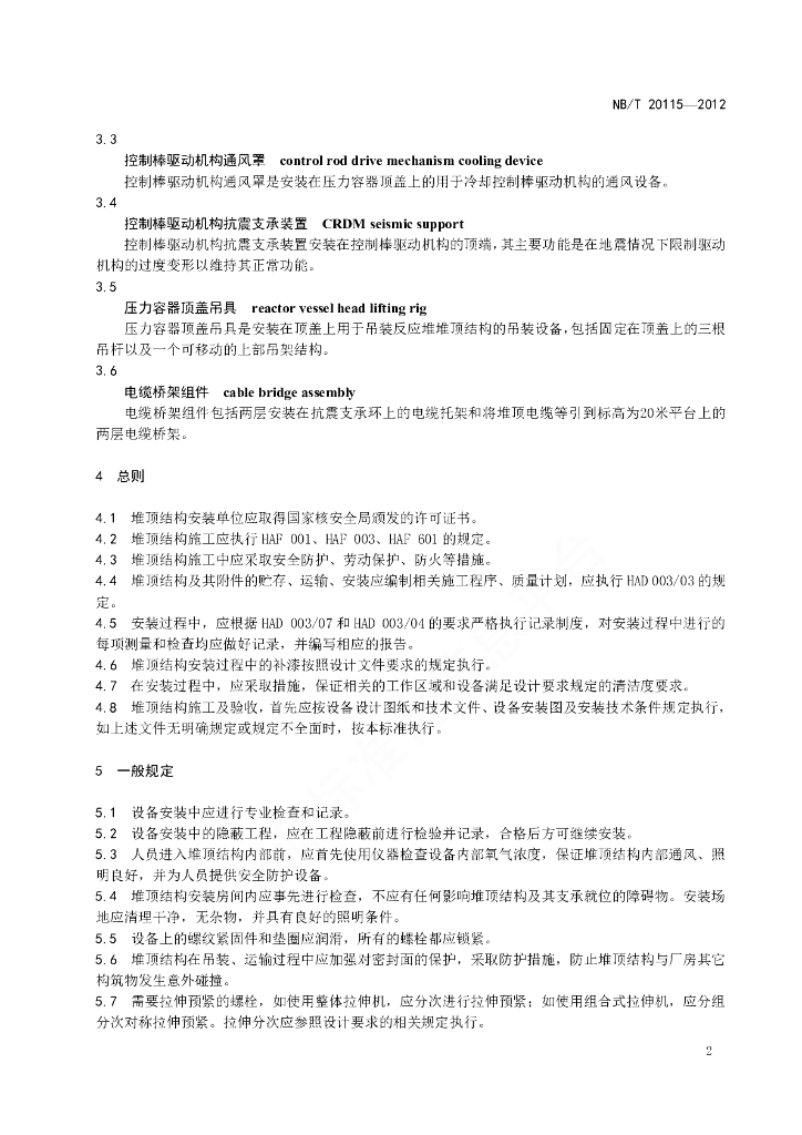 NB/T 20115-2012 压水堆核电厂堆顶结构安装施工技术规程