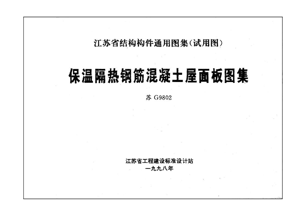 苏G9802 保温隔热钢筋混凝土屋面板图集