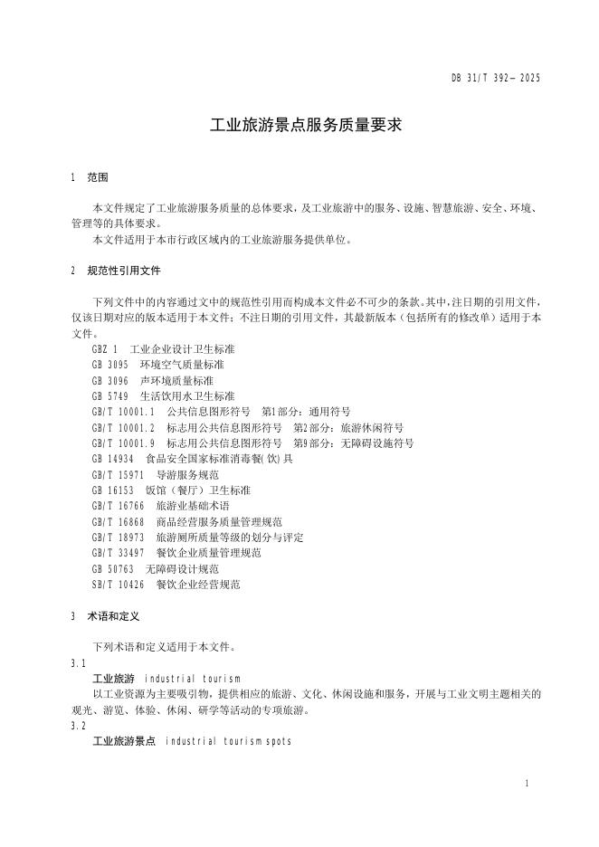 DB31/T 392-2025 工业旅游景点服务质量要求