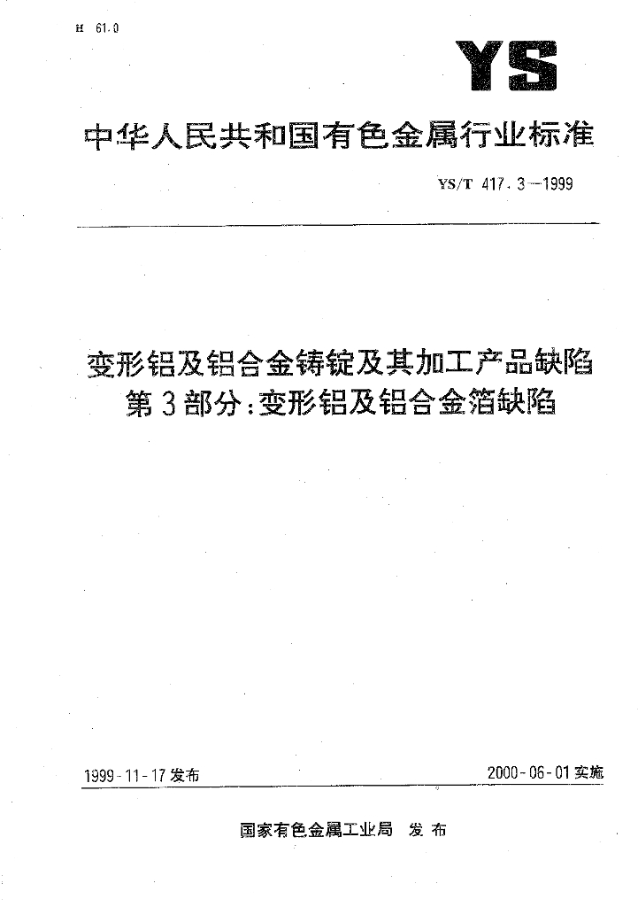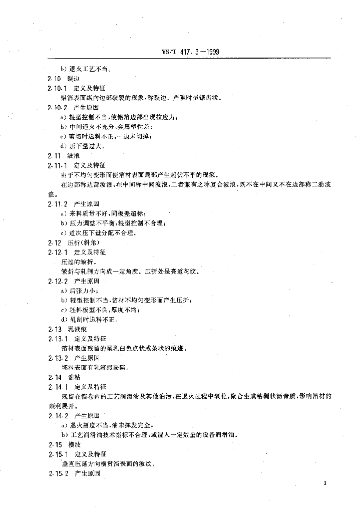 YS/T 417.3-1999 变形铝及铝合金铸锭及其加工产品缺陷 第3部分:变形铝及铝合金箔缺陷