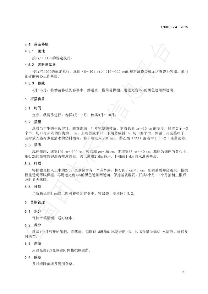 T/GDFS 64-2025 大苞山茶育苗技术规程