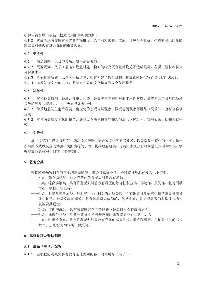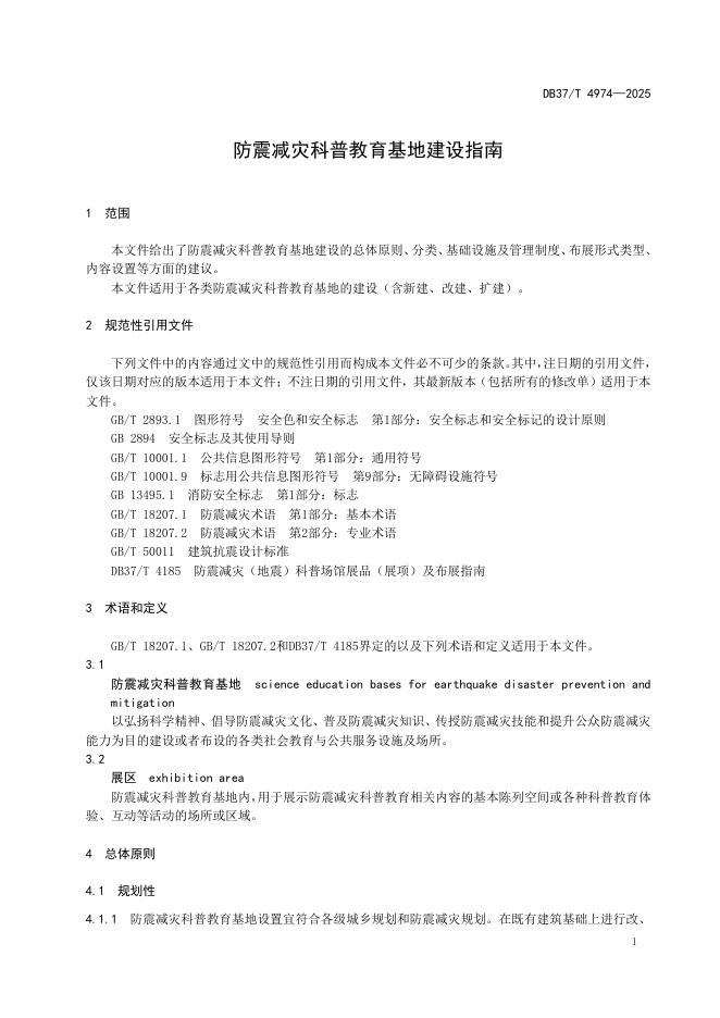 DB37/T 4974-2025 防震减灾科普教育基地建设指南