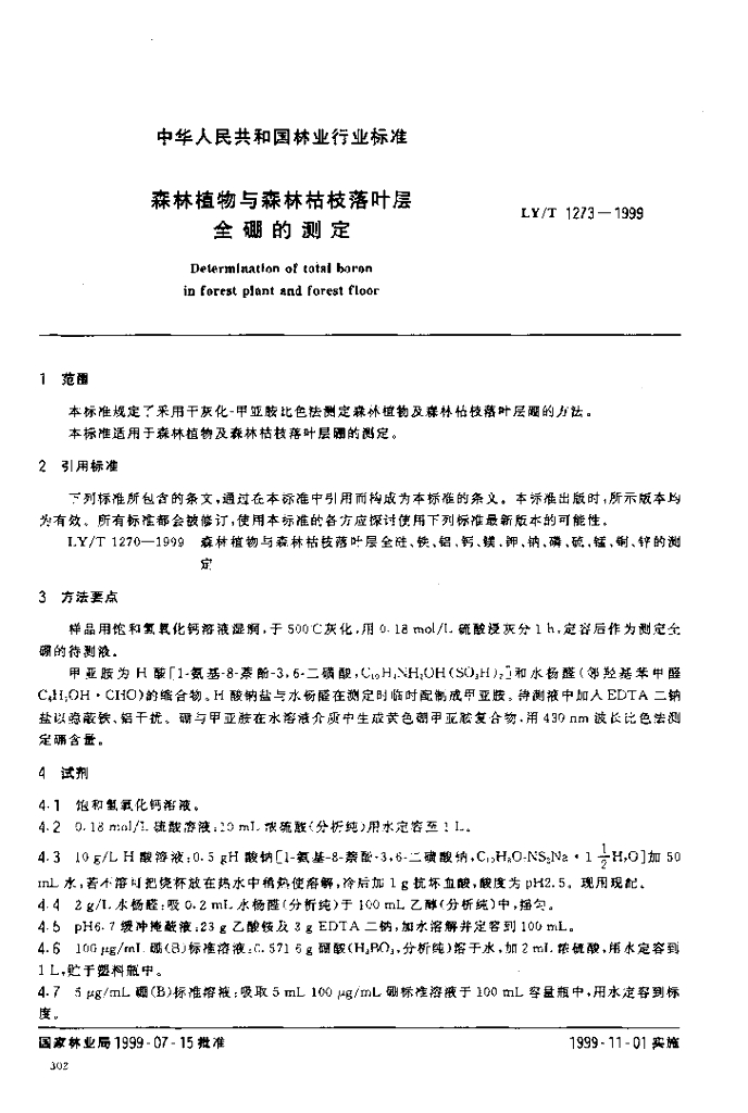 LY/T 1273-1999 森林植物与森林枯枝落叶层全硼的测定