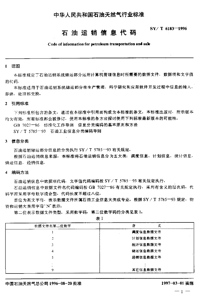 SY/T 6183-1996 石油运销信息代码