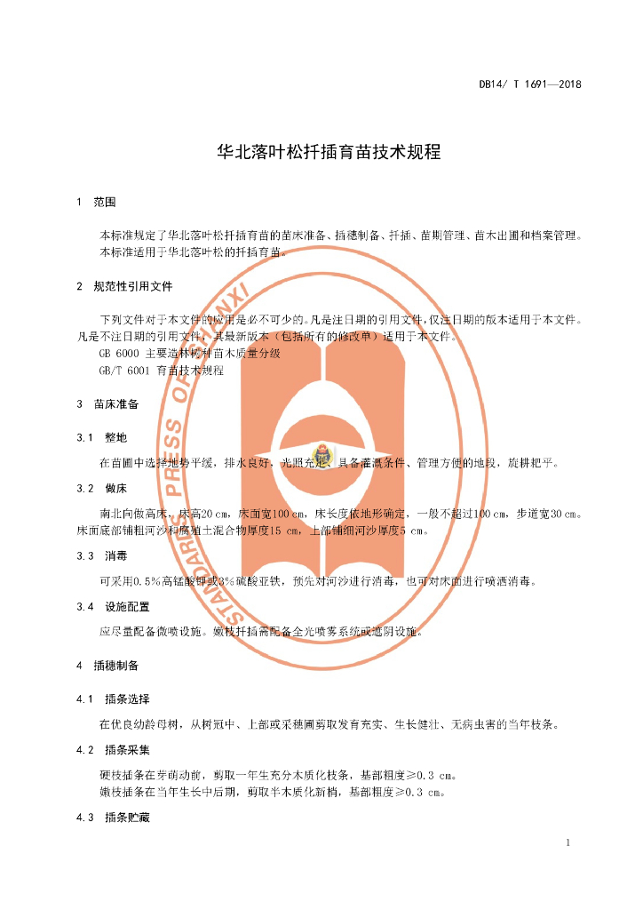 DB14/T 1691-2018 华北落叶松扦插育苗技术规程
