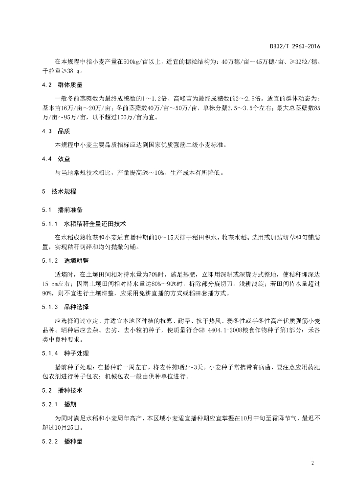 DB32/T 2963-2016 淮北砂姜黑土区稻茬强筋小麦栽培技术规程