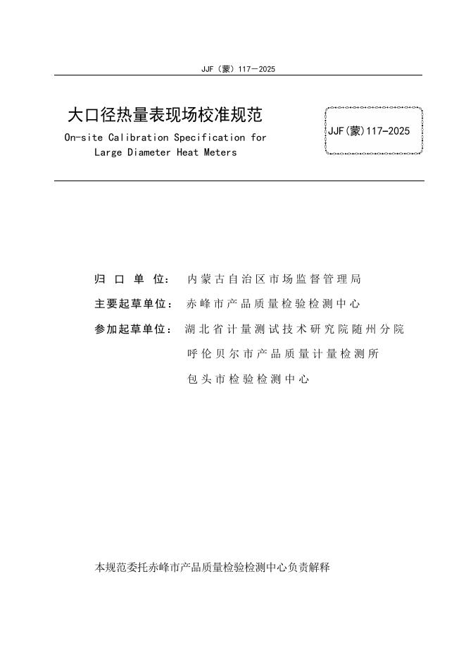 JJF(蒙)117-2025 大口径热量表现场校准规范