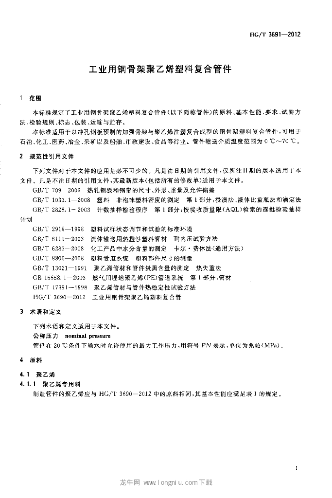 HG/T 3691-2012 工业用钢骨架聚乙烯塑料复合管件