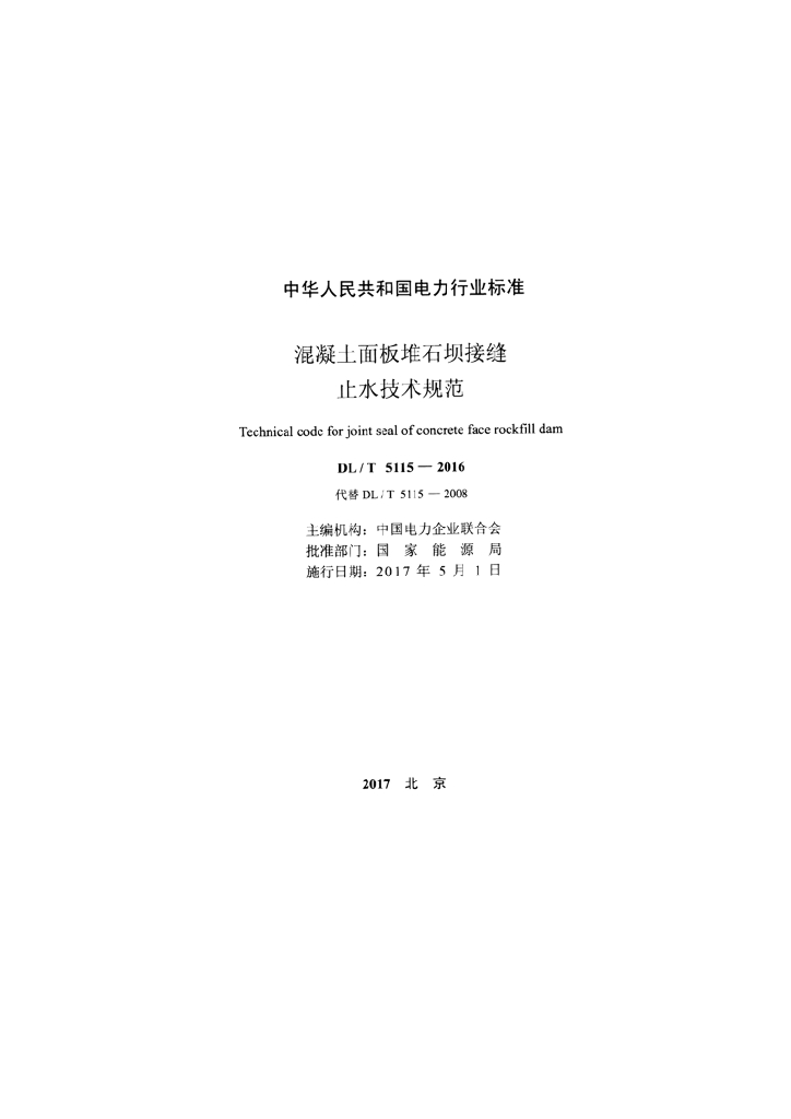 DL/T 5115-2016 混凝土面板堆石坝接缝止水技术规范