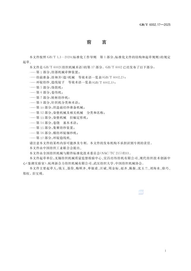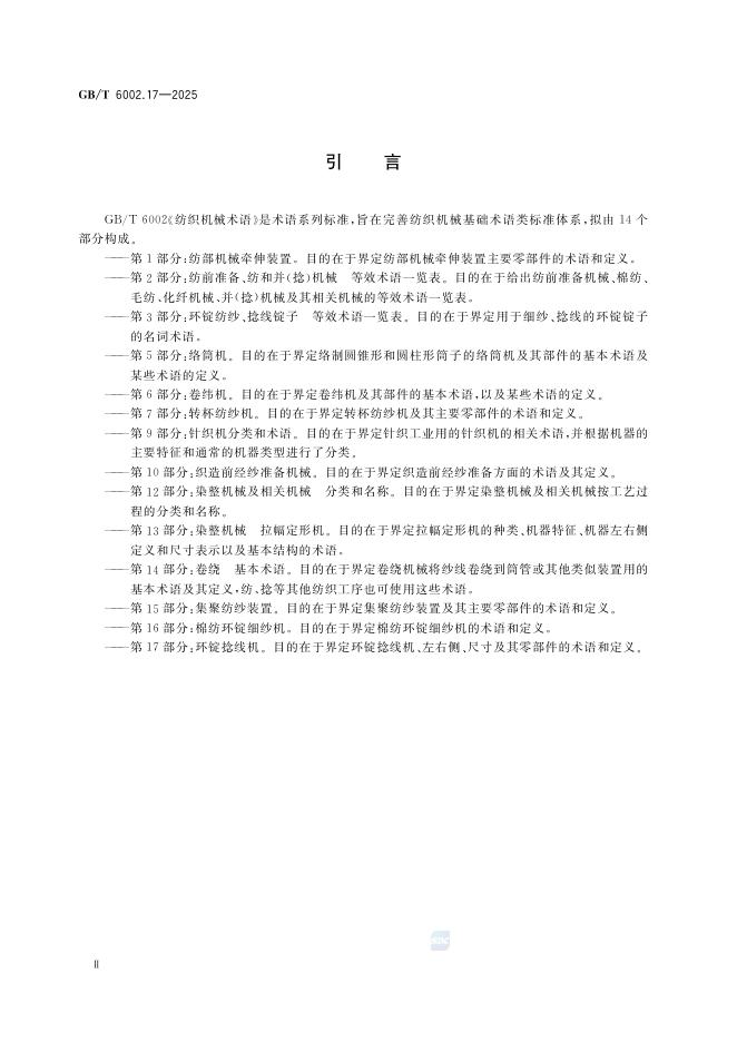 GB/T 6002.17-2025 纺织机械术语 第17部分:环锭捻线机