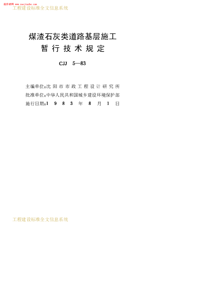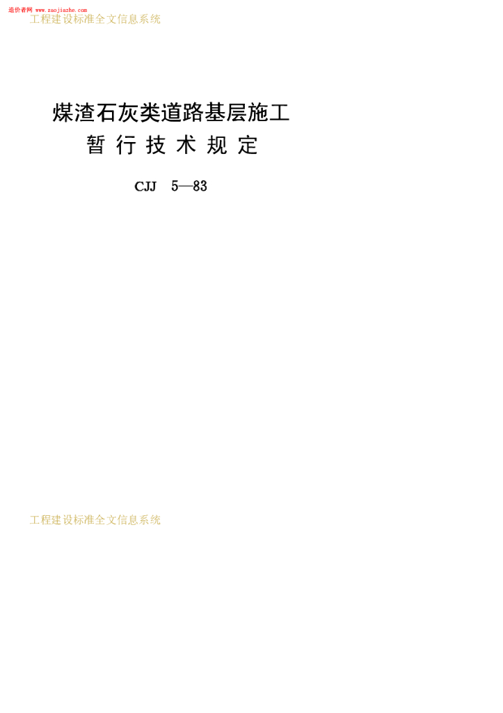 CJJ 5-1983 煤渣石灰类道路基层施工暂行技术规定