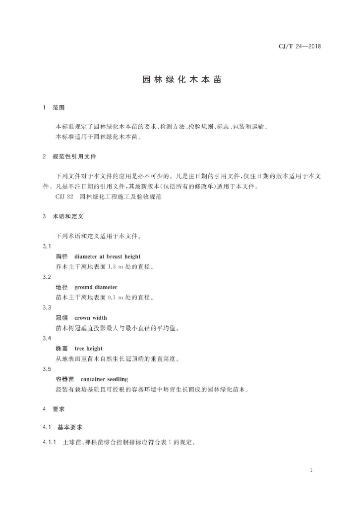 CJ/T 24-2018 园林绿化木本苗