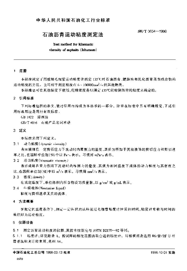 SH/T 0654-1998 石油沥青运动粘度测定法