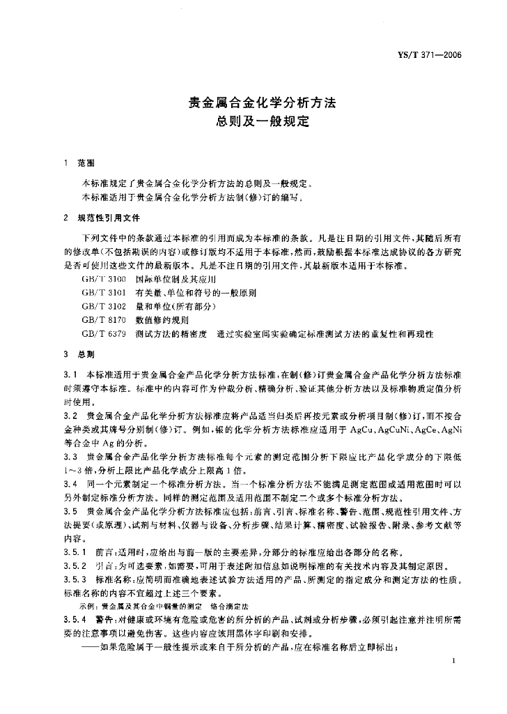 YS/T 371-2006 贵金属合金化学分析方法总则及一般规定