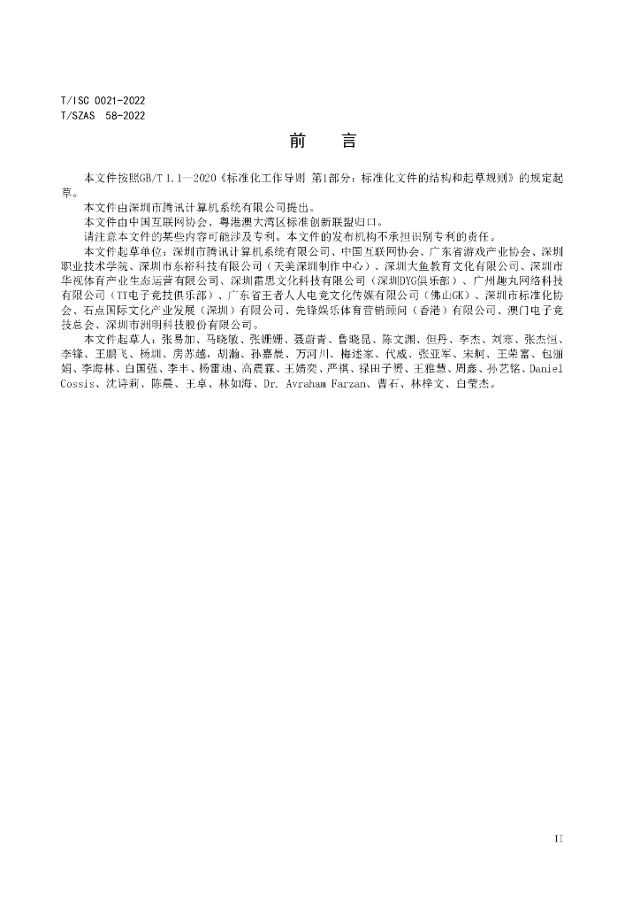 深圳市腾讯计算机系统有限公司、中国互联网协会、广东省游戏产业协会、深圳职业技术学院、深圳市东裕科技有限公司(天美深圳制作中心)、深圳大鱼教育文化有限公司、深圳市华视体育产业生态运营有限公司、深圳霜思文化科技有限公司(深圳DYG俱乐部)、广州趣丸网络科技有限公司(TT电子竞技俱乐部)、广东省王者人人电竞文化传媒有限公司(佛山GK)、深圳市标准化协会、石点国际文化产业发展(深圳)有限公司、先锋娱乐体育营销顾问(香港)有限公司、澳门电子竞技总会、深圳市洲明科技股份有限公司
