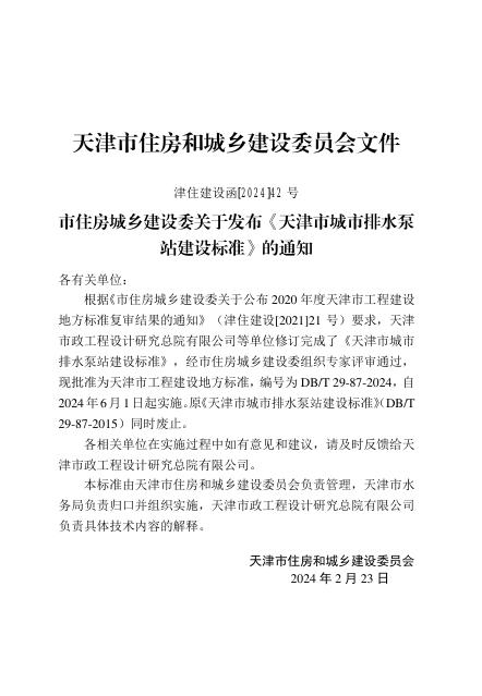 DB/T 29-87-2024 天津市城市排水泵站建设标准