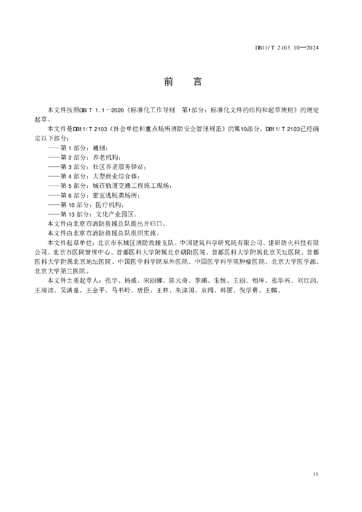 北京市东城区消防救援支队、中国建筑科学研究院有限公司、建研防火科技有限公司、北京市医院管理中心、首都医科大学附属北京朝阳医院、首都医科大学附属北京天坛医院、首都医科大学附属北京地坛医院、中国医学科学院阜外医院、中国医学科学院肿瘤医院、北京大学医学部、北京大学第三医院