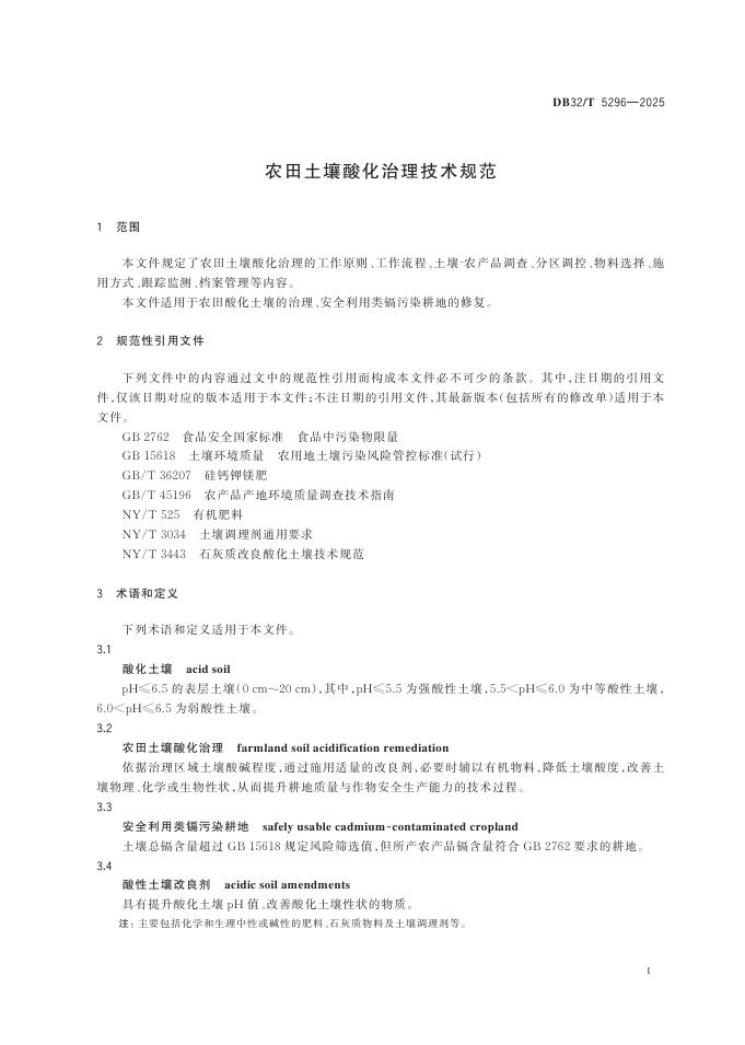 DB32/T 5296-2025 农田土壤酸化治理技术规范