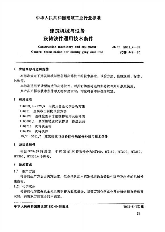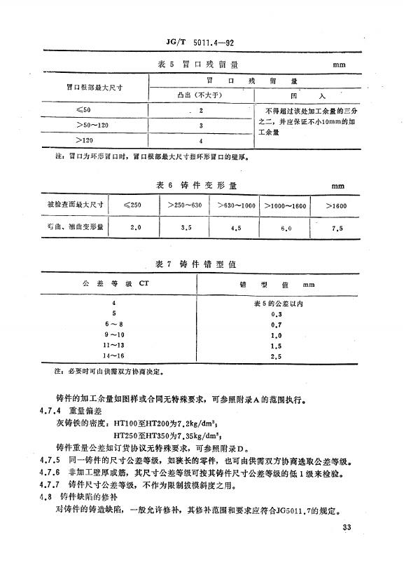 JG/T 5011.4-1992 建筑机械与设备灰铸铁件通用技术条件
