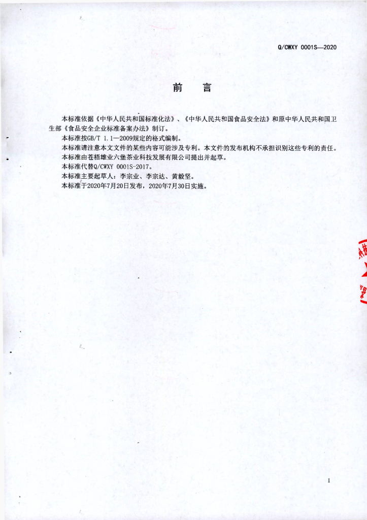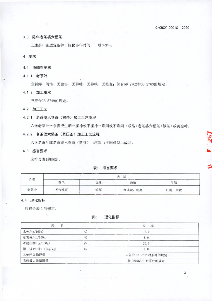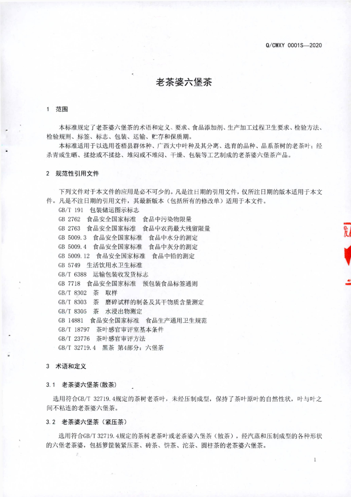 Q/CWXY 0001S-2020 老茶婆六堡茶