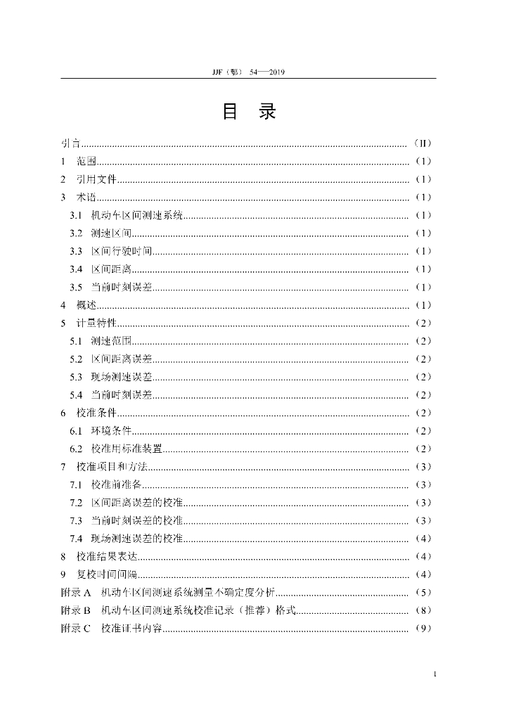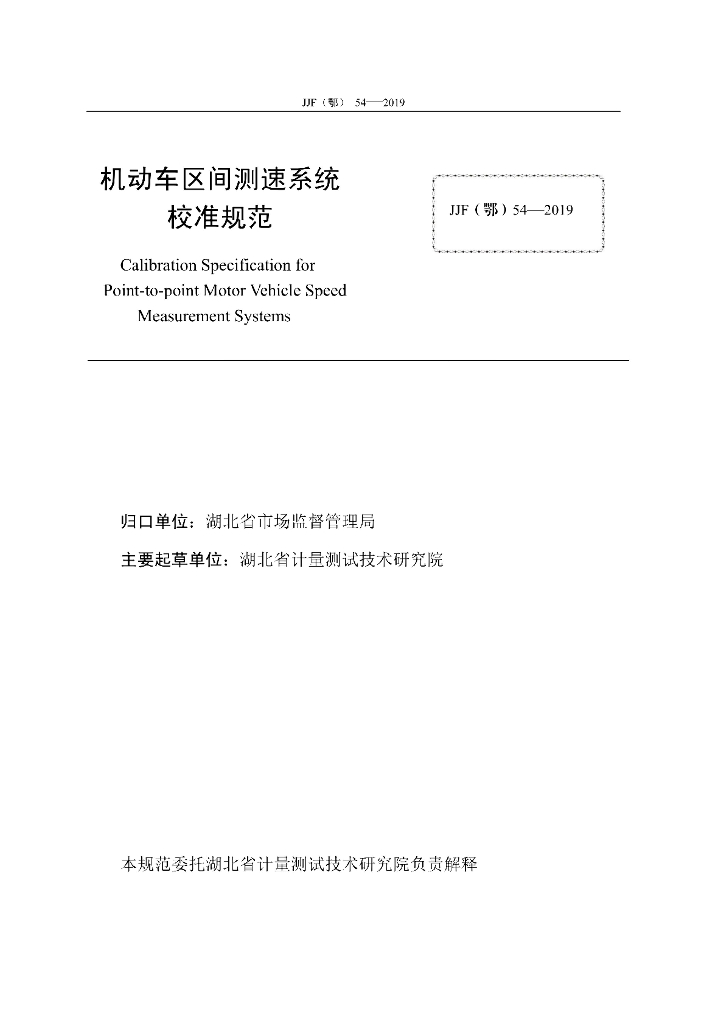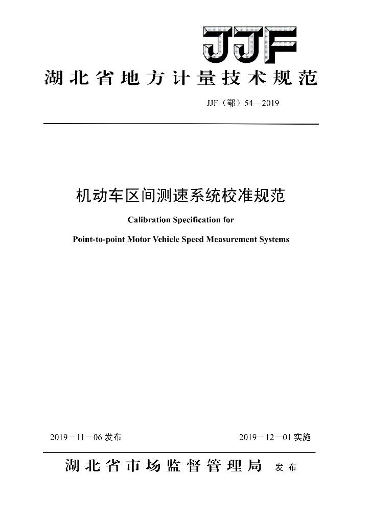 JJF(鄂)54-2019 机动车区间测速系统校准规范