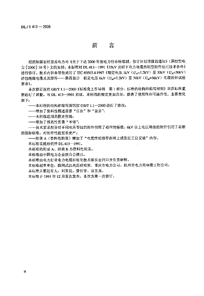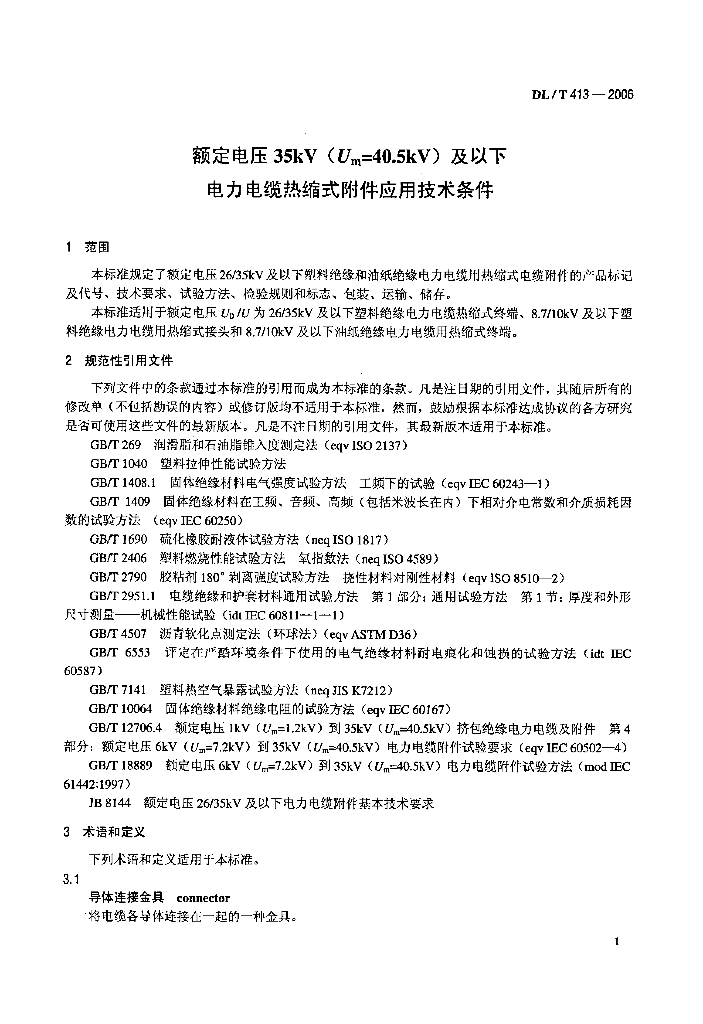 DL/T 413-2006 定额电压35kV(Um=40.5kV)及以下电力电缆热缩式附件技术条件