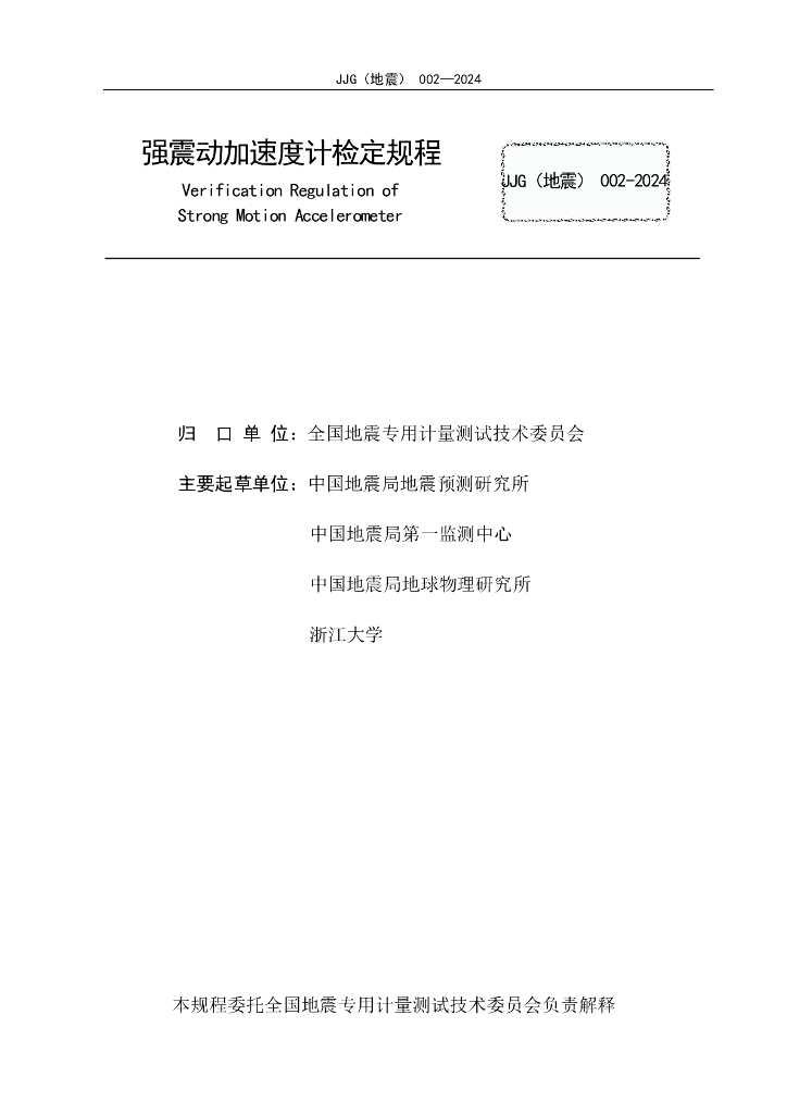 JJG(地震) 002-2024 强震动加速度计检定规程