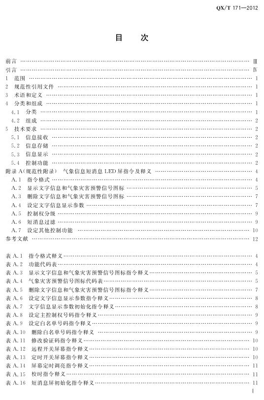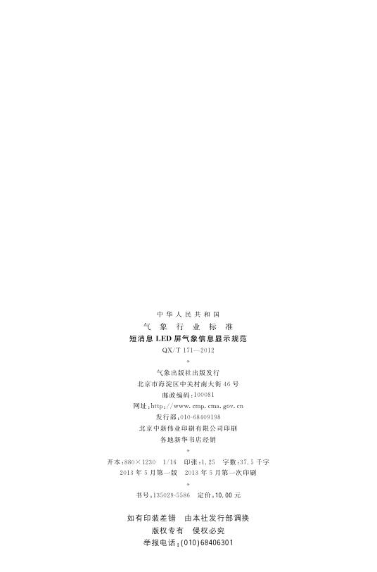 QX/T 171-2012 短消息LED屏气象信息显示规范