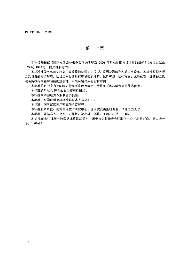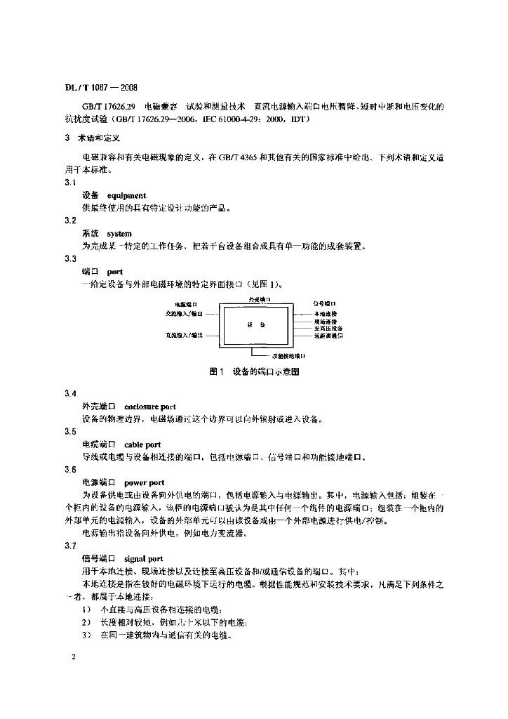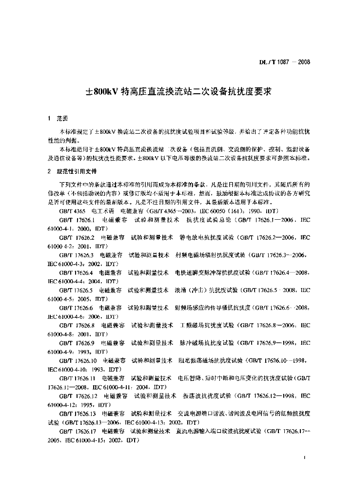 DL/T 1087-2008 ±800kV特高压直流换流站二次设备抗扰度要求