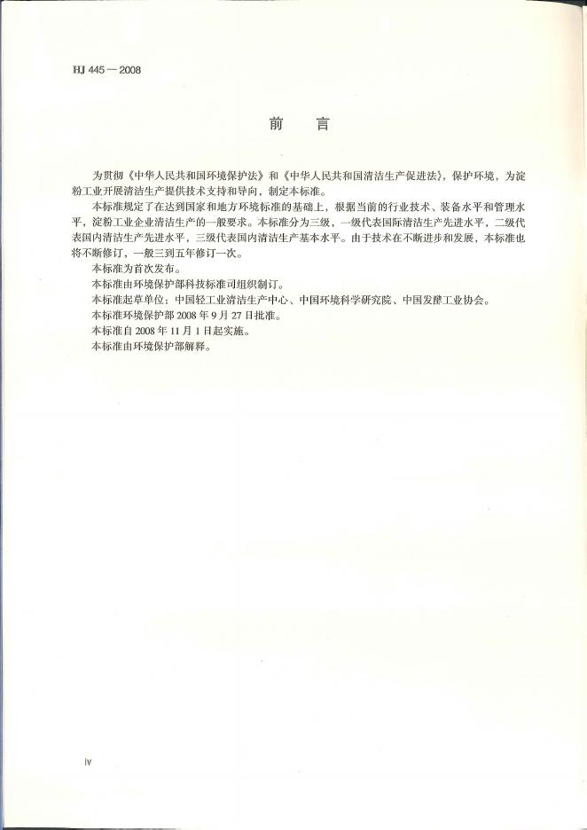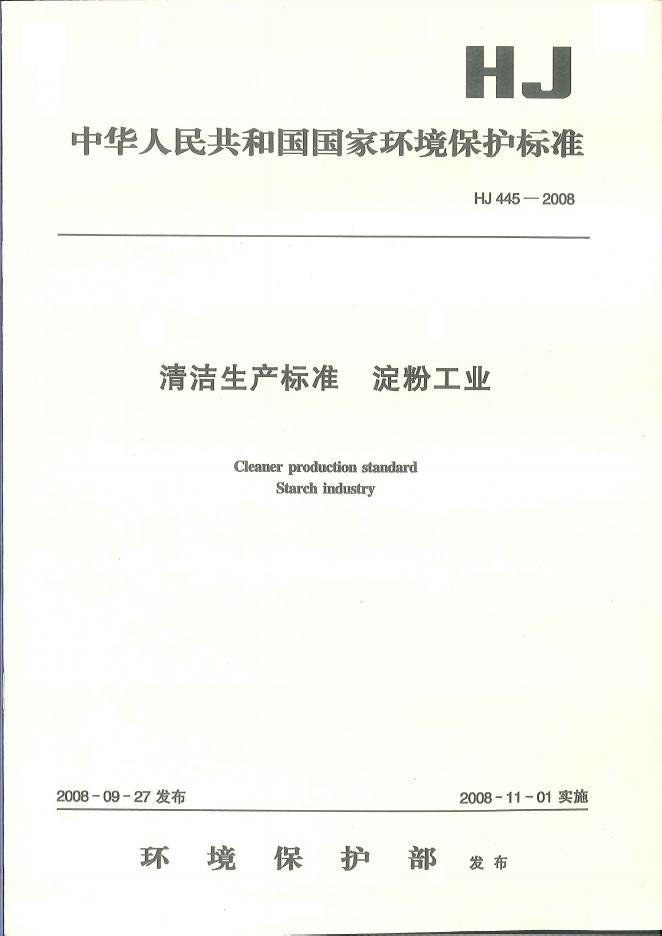 HJ 445-2008 清洁生产标准 淀粉工业