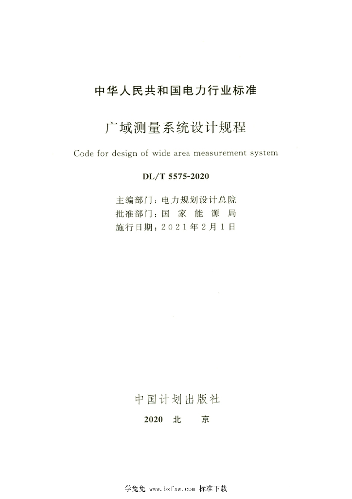 DL/T 5575-2020 广域测量系统设计规程