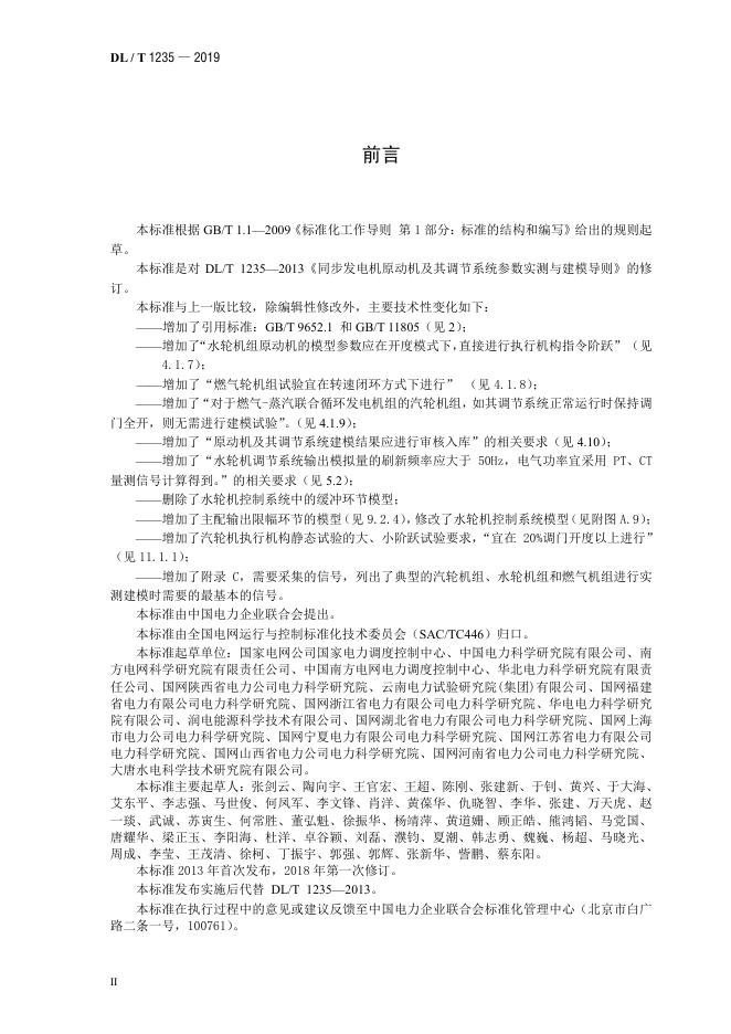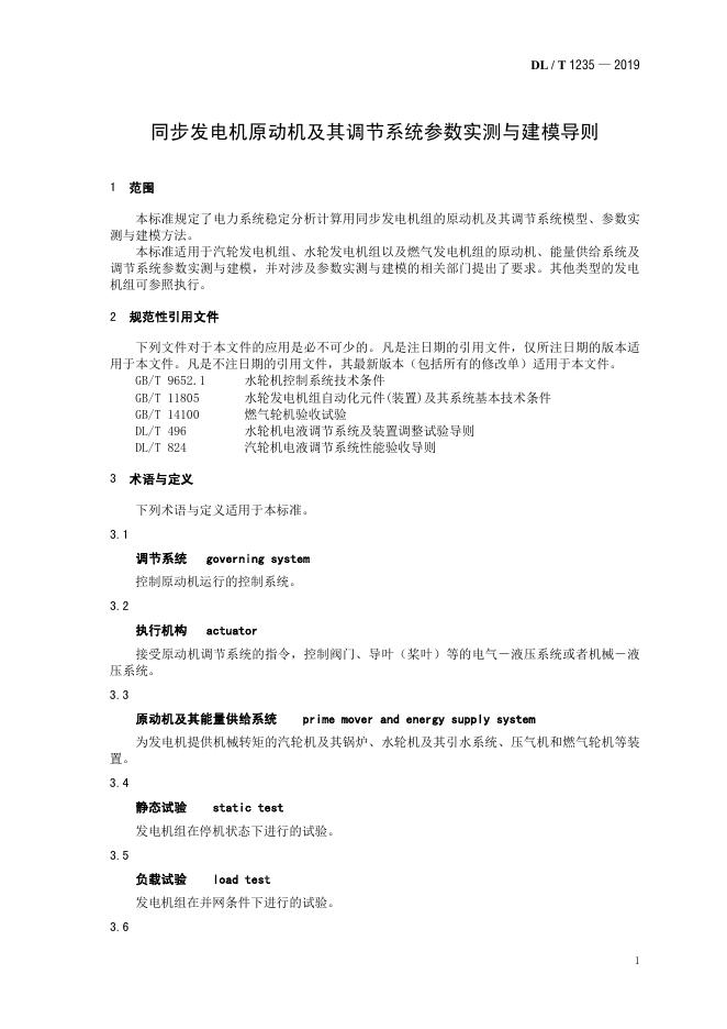 DL/T 1235-2019 同步发电机原动机及其调节系统参数实测与建模导则