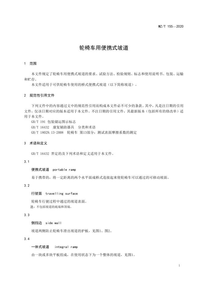 MZ/T 155-2020 轮椅车用便携式坡道