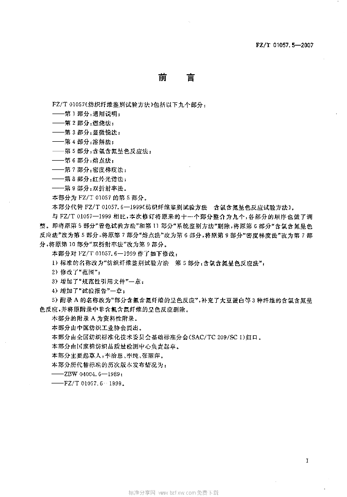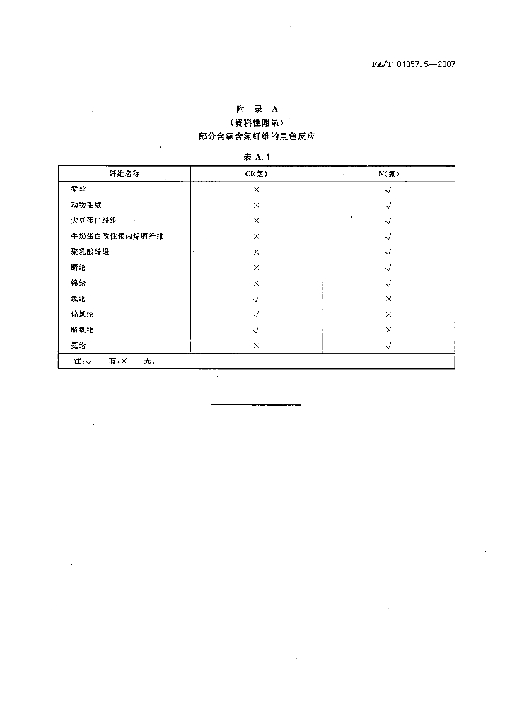 FZ/T 01057.5-2007 纺织纤维鉴别试验方法 第5部分含氯含氮呈色反应法