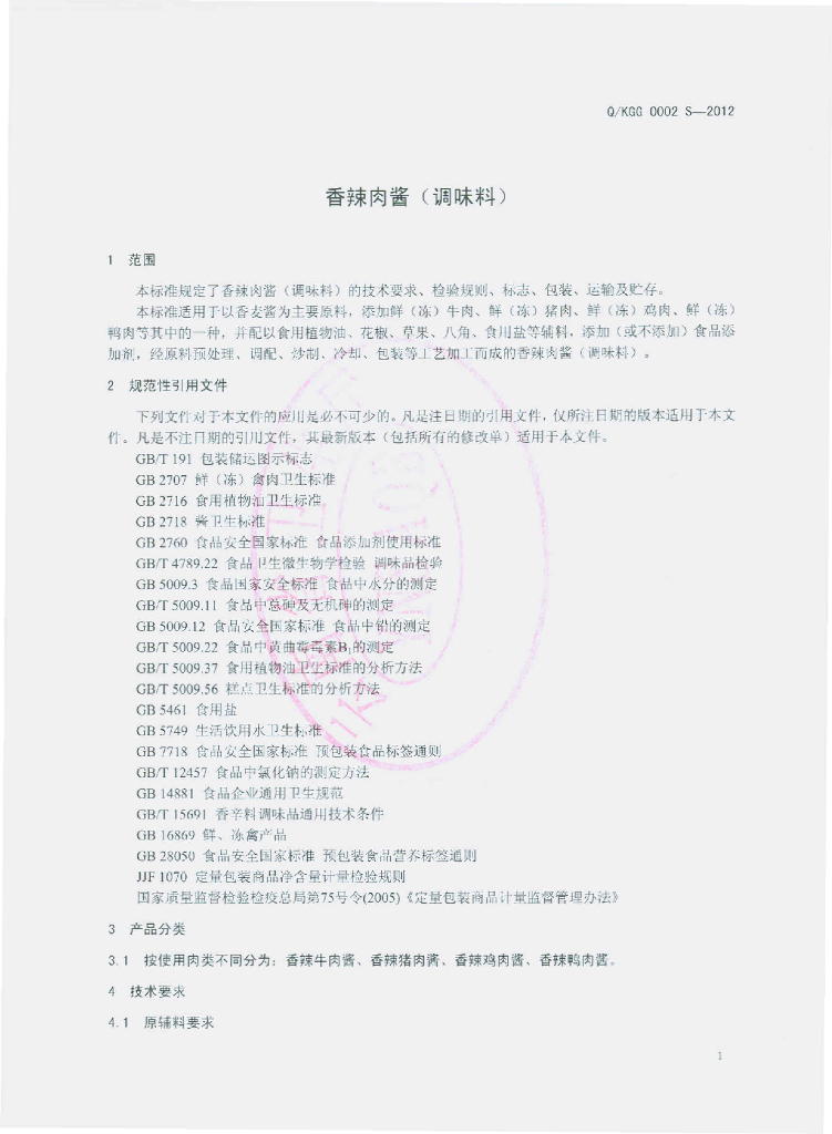 Q/KGG 0002S-2012 香辣肉酱(调味料)