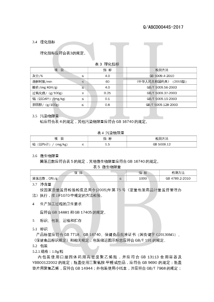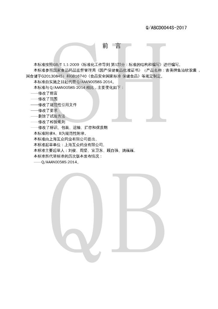 Q/ABCD 0044S-2017 吉美牌鱼油软胶囊