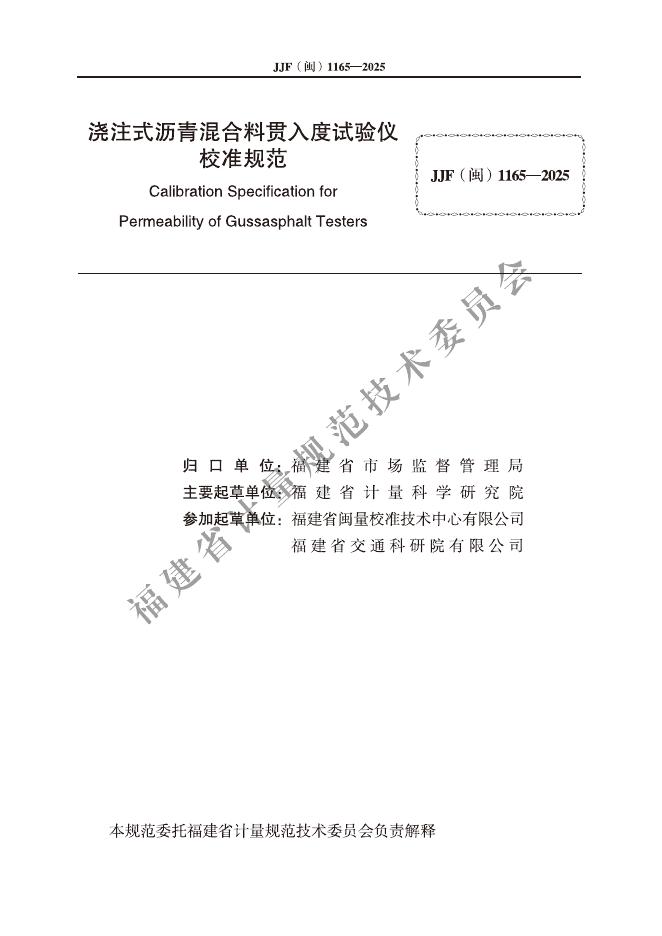 JJF(闽)1165-2025 浇注式沥青混合料贯入度试验仪校准规范