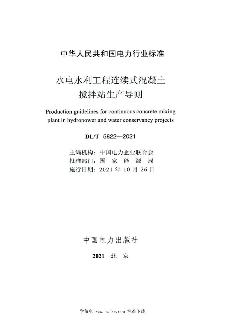 DL/T 5822-2021 水电水利工程连续式混凝土搅拌站生产导则