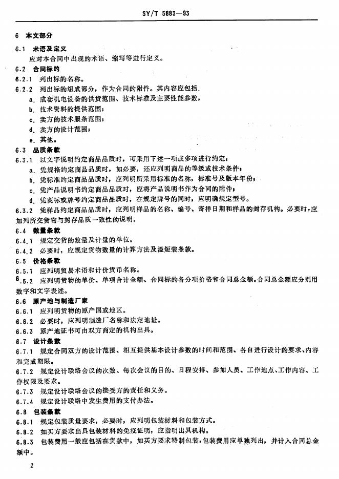 SY/T 5883-1993 石油工业成套机电设备出口合同规范