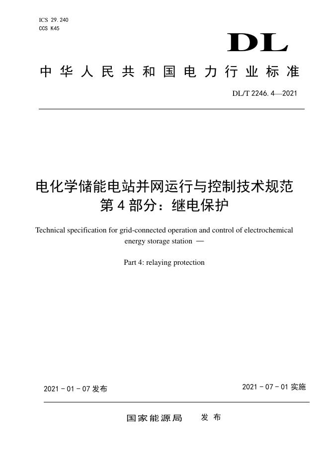 DL/T 2246.4-2021 电化学储能电站并网运行与控制技术规范 第4部分:继电保护