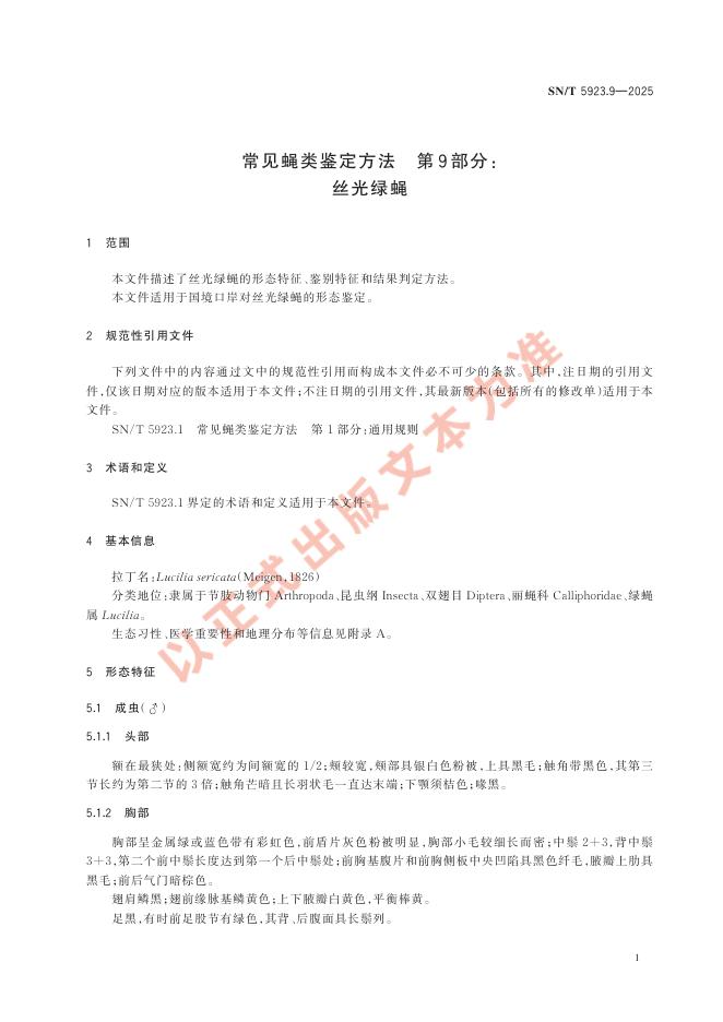 SN/T 5923.9-2025 常见蝇类鉴定方法 第9部分:丝光绿蝇