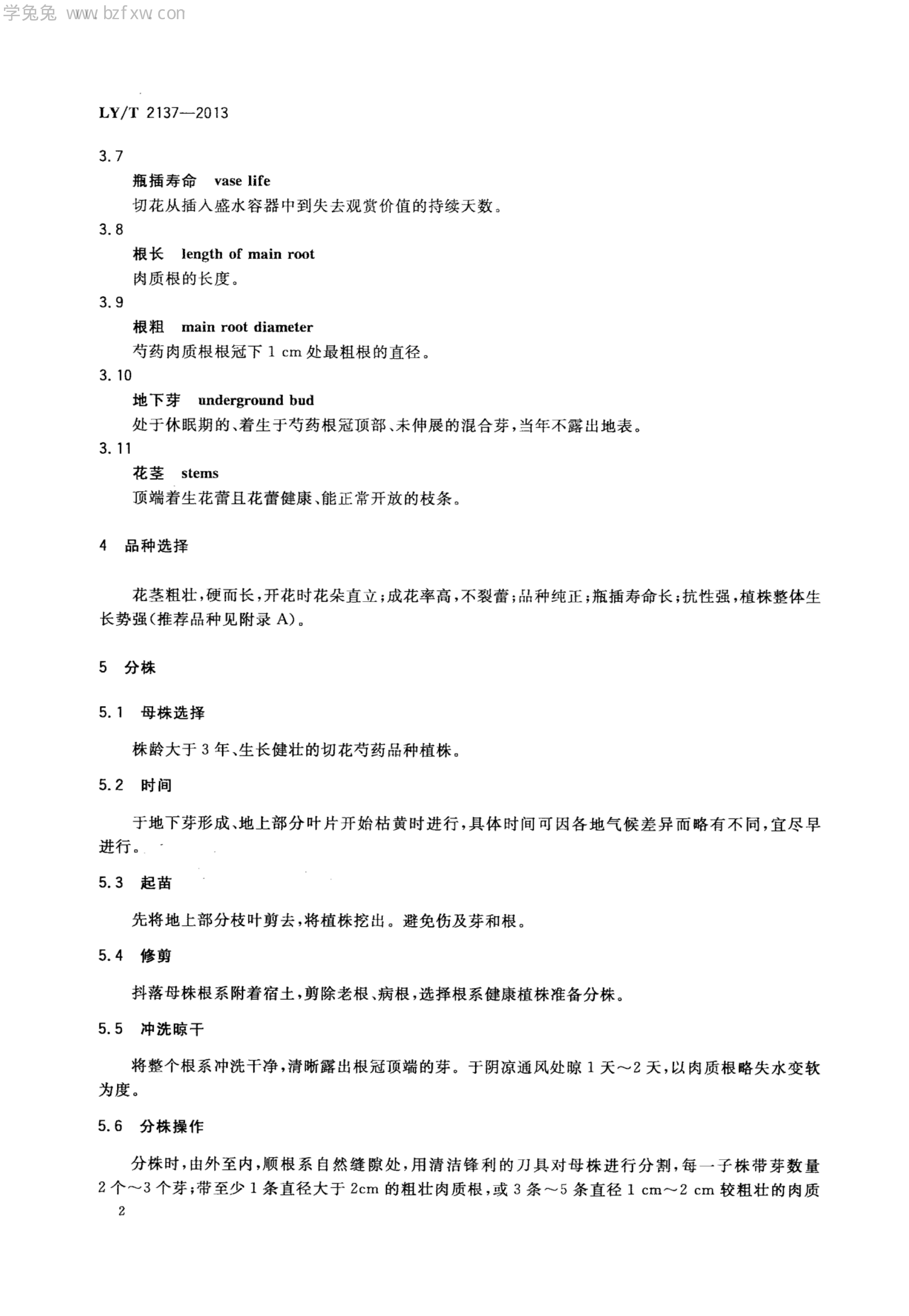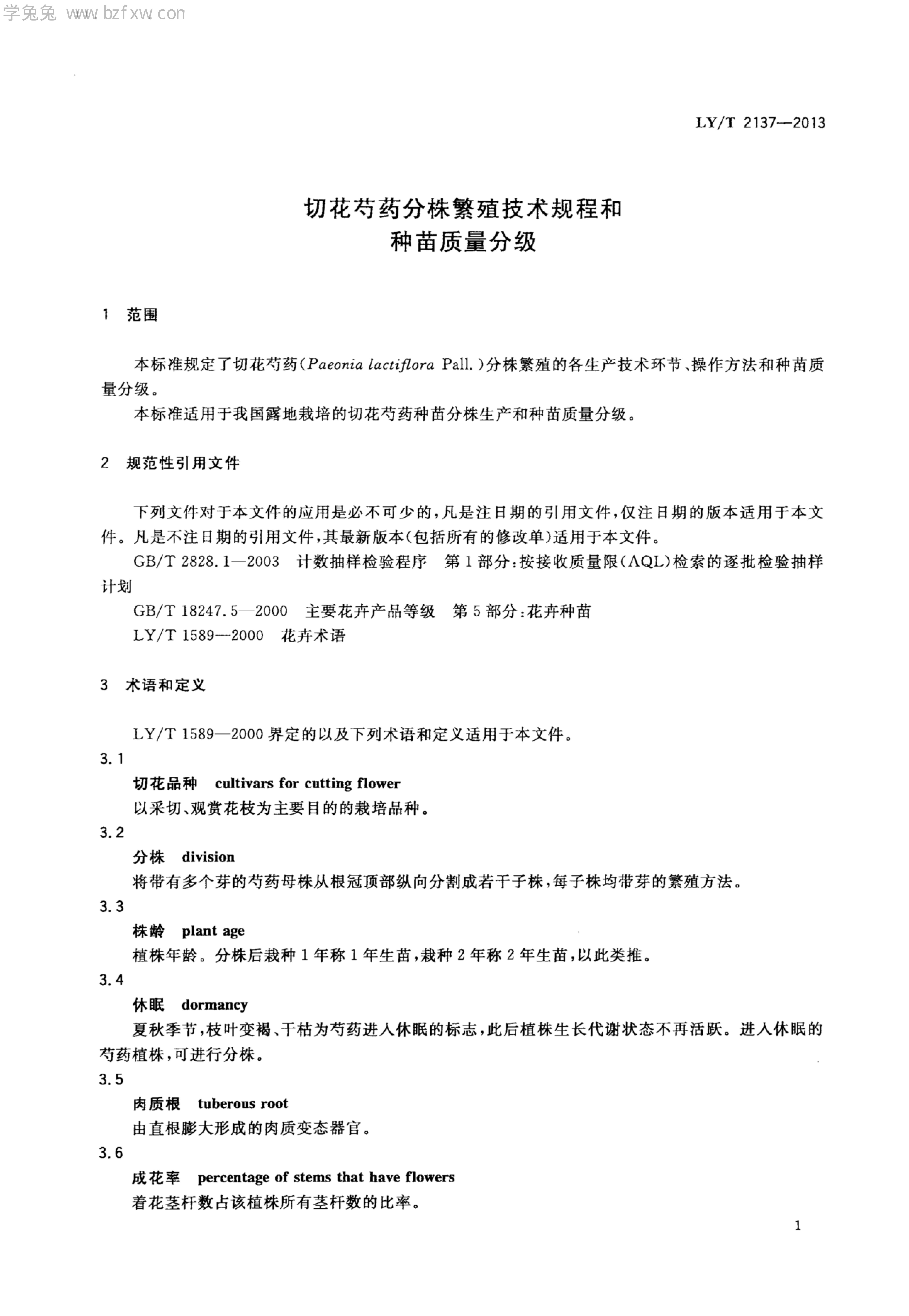 LY/T 2137-2013 切花芍药分株繁殖技术规程和种苗质量分级