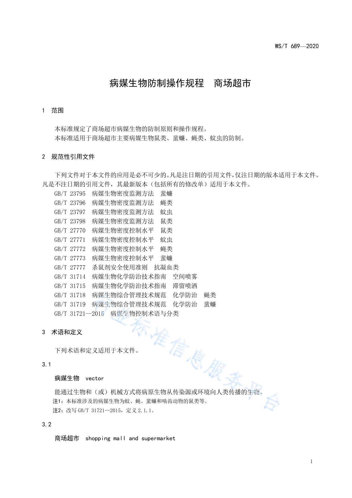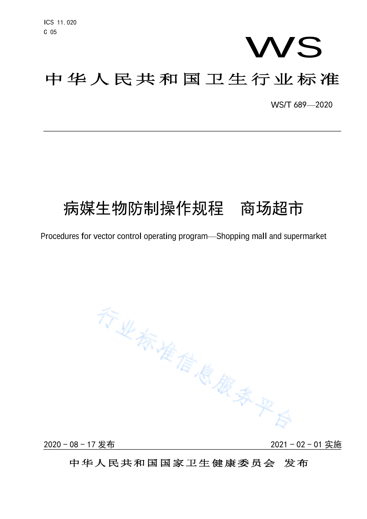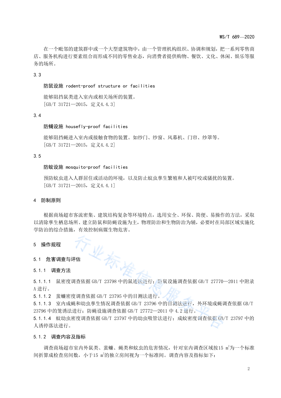 WS/T 689-2020 病媒生物防制操作规程 商场超市