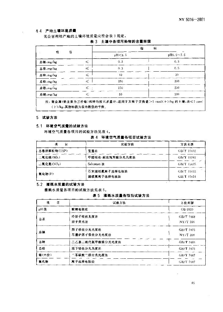 NY 5016-2001 无公害食品 柑桔产地环境条件