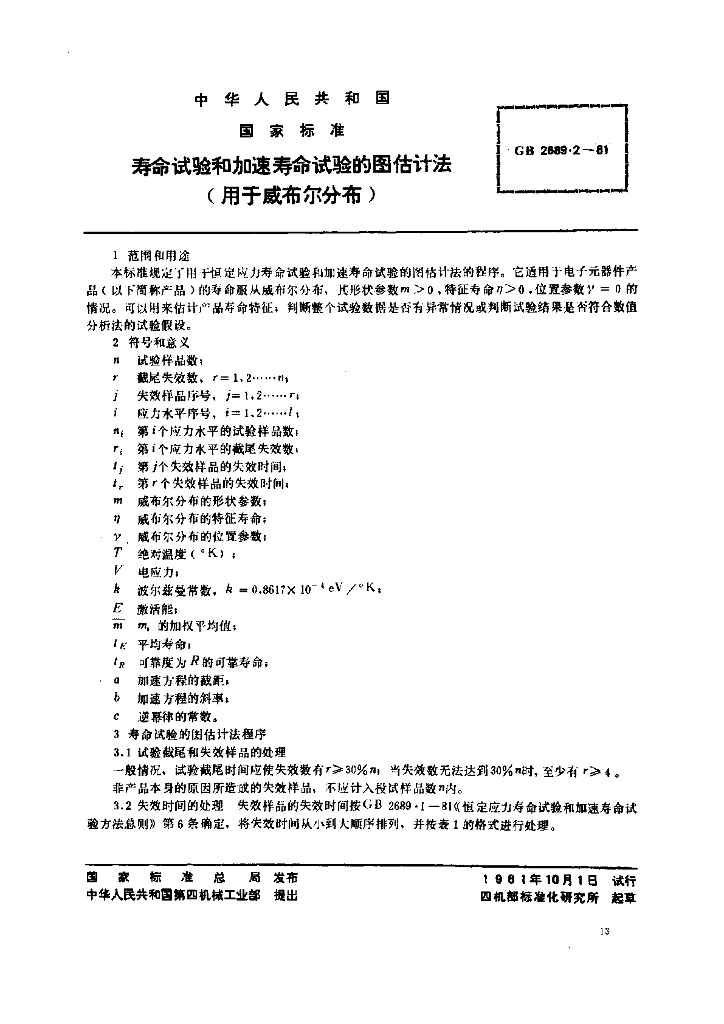 GB/T 2689.2-1981 寿命试验和加速寿命试验的图估计法(用于威布尔分布)