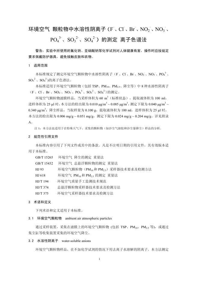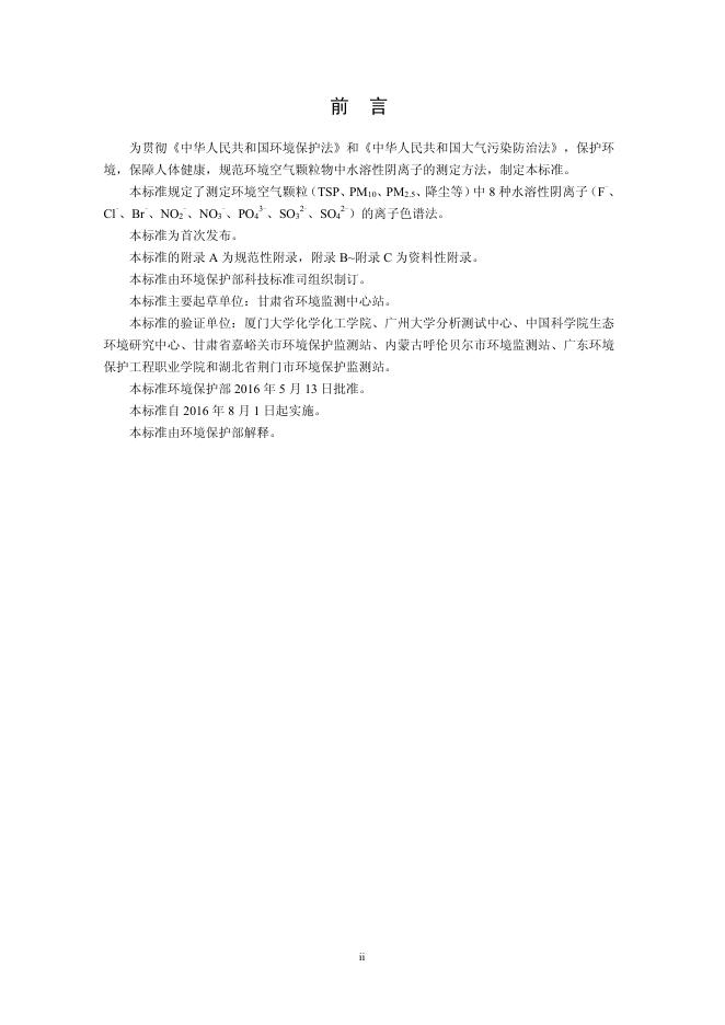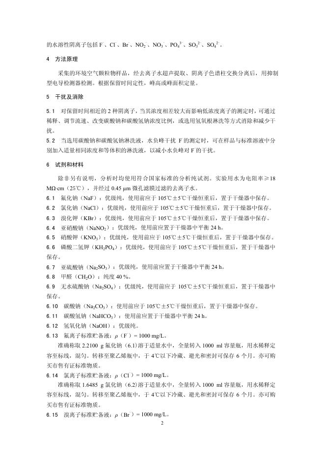 HJ 799-2016 环境空气 颗粒物中水溶性阴离子(F-、Cl-、Br-、NO2-、NO3-、PO43-、SO32-、SO42-)的测定 离子色谱法