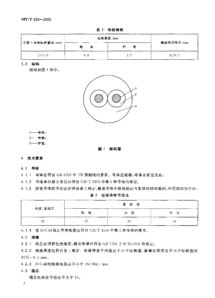 MT/T 930-2005 煤矿用阻燃爆破母线技术条件