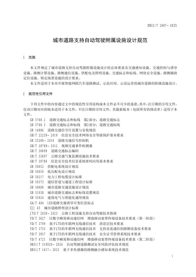 DB31/T 1607-2025 城市道路支持自动驾驶附属设施设计规范