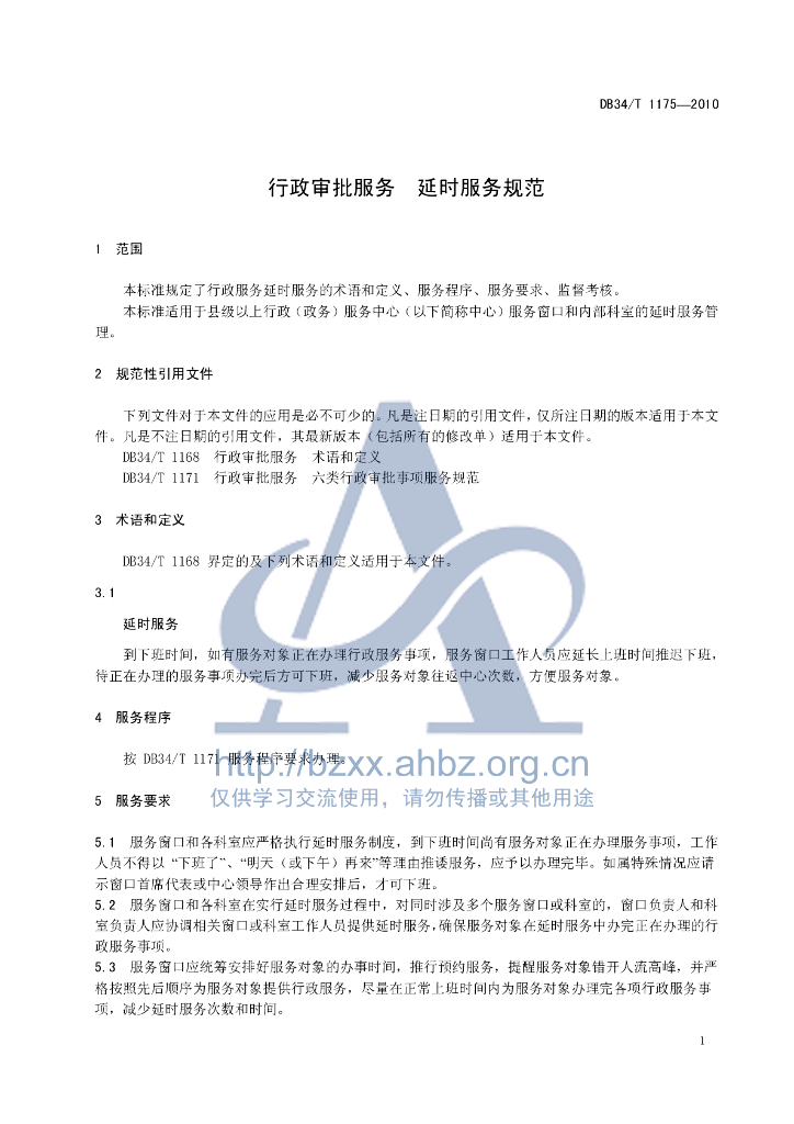 DB34/T 1175-2010 行政审批服务 延时服务规范