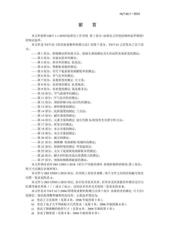 YS/T 63.7-2024 铝用炭素材料检测方法 第7部分:表观密度的测定 尺寸法